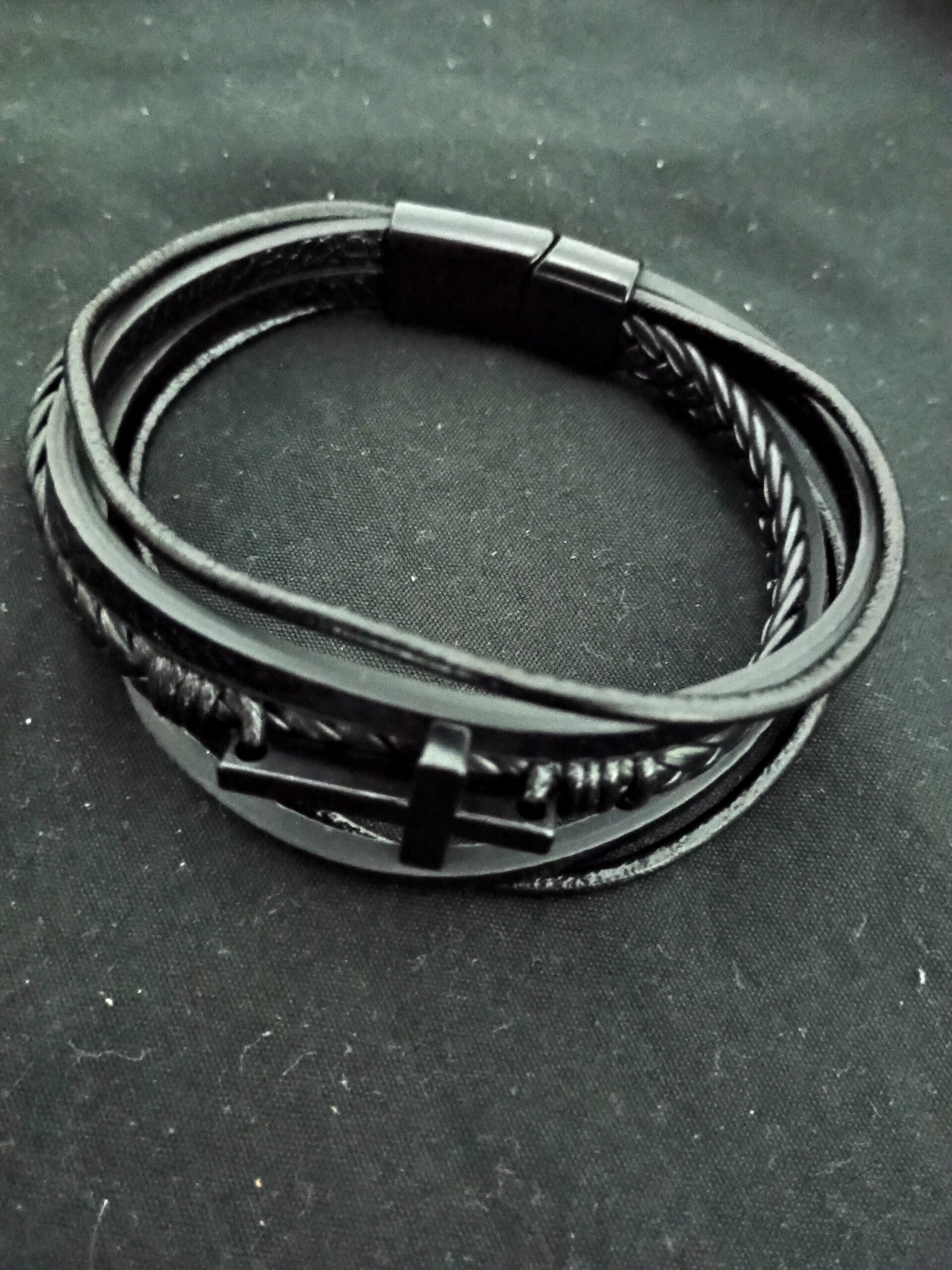 Black Colour Cross Leather Bracelet (V3: